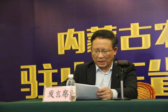 自治區(qū)農(nóng)牧業(yè)廳產(chǎn)業(yè)化處處長(zhǎng)王補(bǔ)在宣讀辦事處成立文件