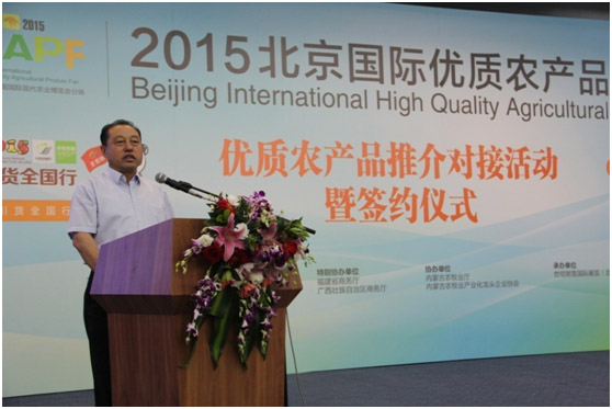 在優(yōu)質(zhì)農(nóng)產(chǎn)品推介對接活動暨簽約儀式上,內(nèi)蒙古農(nóng)牧業(yè)產(chǎn)業(yè)化龍頭企業(yè)協(xié)會執(zhí)行會長林永亮向與會人員介紹了內(nèi)蒙古獨特的地域文化及內(nèi)蒙古優(yōu)質(zhì)綠色農(nóng)畜產(chǎn)品,林會長指出,得天獨厚的資源優(yōu)勢孕育了內(nèi)蒙古優(yōu)質(zhì)綠色無污染的農(nóng)畜產(chǎn)品,內(nèi)蒙古優(yōu)質(zhì)無污染的農(nóng)畜產(chǎn)品進駐北京精品館,必將為北京市民帶來純正的來自內(nèi)蒙古大草原的美味。林會長表示,本次會議的主要目的就是帶領(lǐng)內(nèi)蒙古優(yōu)秀農(nóng)牧業(yè)產(chǎn)業(yè)化龍頭企業(yè),形成聯(lián)合艦隊,打組合拳,打造內(nèi)蒙古的品牌,讓北京市民深入的認知和了解內(nèi)蒙古的產(chǎn)品。會上,林會長還邀請與會人員參加包頭國際牛羊肉大會和內(nèi)蒙古第三屆綠博會。林會長講話后,隨即就有沃爾瑪?shù)却笮蜕坛筒少徤膛c他聯(lián)系對接。