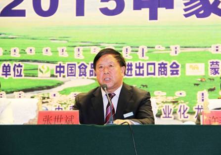 內(nèi)蒙古農(nóng)牧業(yè)產(chǎn)業(yè)化龍頭企業(yè)協(xié)會會長張世斌在會上講話