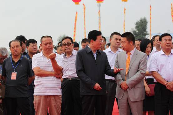 內(nèi)蒙古農(nóng)牧業(yè)廳副廳長(zhǎng)云挨厚(左二)等領(lǐng)導(dǎo)為工廠開業(yè)剪彩