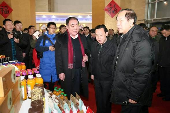 (左)陪同農(nóng)業(yè)部副部長屈冬玉(中)視察參展產(chǎn)品