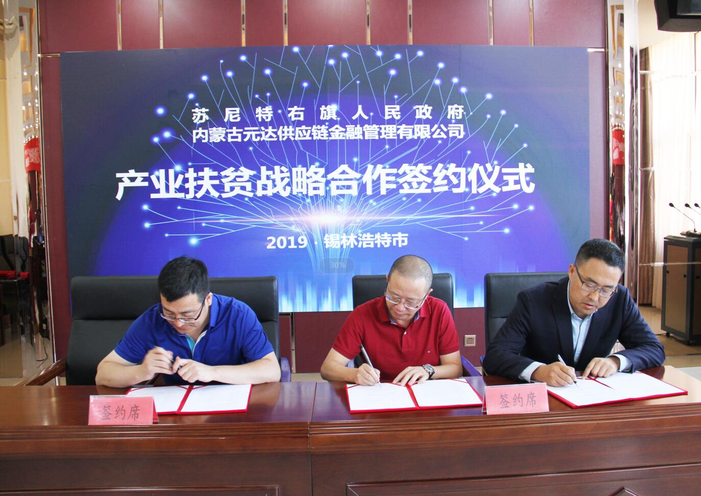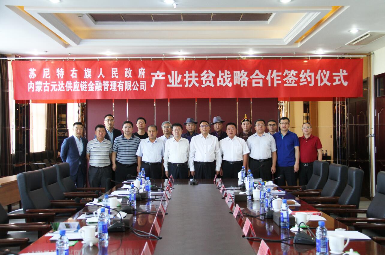 2019年9月2日,內蒙古農牧業(yè)產業(yè)化龍頭企業(yè)協(xié)會會員單位、內蒙古元達供應鏈金融管理有限公司與蘇尼特右旗人民政府產業(yè)扶貧戰(zhàn)略合作簽約儀式在錫林浩特市成功舉行。