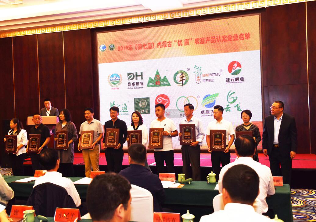 會(huì)議現(xiàn)場(chǎng)揭曉了第七屆內(nèi)蒙古“名優(yōu)特”農(nóng)畜產(chǎn)品成果并進(jìn)行了頒獎(jiǎng)儀式。協(xié)會(huì)于今年5月初啟動(dòng)名優(yōu)特農(nóng)畜產(chǎn)品認(rèn)定工作,經(jīng)過企業(yè)在線自主申報(bào)、材料初審、專家評(píng)審、實(shí)地考察、評(píng)審委員會(huì)確認(rèn)、公示公告六個(gè)環(huán)節(jié),最終確定了本屆名優(yōu)特農(nóng)畜產(chǎn)品認(rèn)定名單,58家企業(yè)的199款產(chǎn)品分別被認(rèn)定為“名優(yōu)特”、“優(yōu)質(zhì)”、“特色”產(chǎn)品,其中14家企業(yè)的51個(gè)產(chǎn)品為“名優(yōu)特”農(nóng)畜產(chǎn)品,25家企業(yè)的85個(gè)產(chǎn)品為“優(yōu)質(zhì)”農(nóng)畜產(chǎn)品,25家企業(yè)的63個(gè)產(chǎn)品為“特色”農(nóng)畜產(chǎn)品。