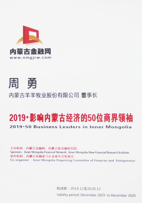年會期間重磅推出“2019·影響內(nèi)蒙古經(jīng)濟的50位商界領(lǐng)袖名單”,協(xié)會會長、錫林郭勒盟羊羊牧業(yè)股份有限公司董事長周勇,協(xié)會副會長:內(nèi)蒙古伊利實業(yè)集團股份有限公司董事長潘剛、內(nèi)蒙古蒙牛乳業(yè)(集團)股份有限公司總裁盧敏放、內(nèi)蒙古宇航人高技術(shù)產(chǎn)業(yè)有限責(zé)任公司總經(jīng)理王尚義、維信(內(nèi)蒙古)羊絨集團有限公司董事長郝旭寬、赤峰東榮羊絨發(fā)展(集團)有限公司董事長程旭東、內(nèi)蒙古民豐種業(yè)有限公司董事長盧文兵、內(nèi)蒙古二龍屯有機農(nóng)業(yè)有限責(zé)任公司董事長薛金利、呼倫貝爾肉業(yè)(集團)股份有限公司董事長邵堃等多家單位榮獲此項殊榮。選擇上榜的金融家與企業(yè)家精英在一定程度上反映了2019年其取得的新成績,以及能夠影響企業(yè)管理、行業(yè)格局和更廣闊商業(yè)世界的杰出領(lǐng)導(dǎo)者。