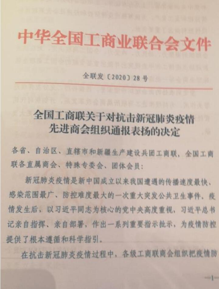 標(biāo)題:“抗擊新冠肺炎疫情先進(jìn)商會(huì)” 既是榮譽(yù),也是前行的動(dòng)力