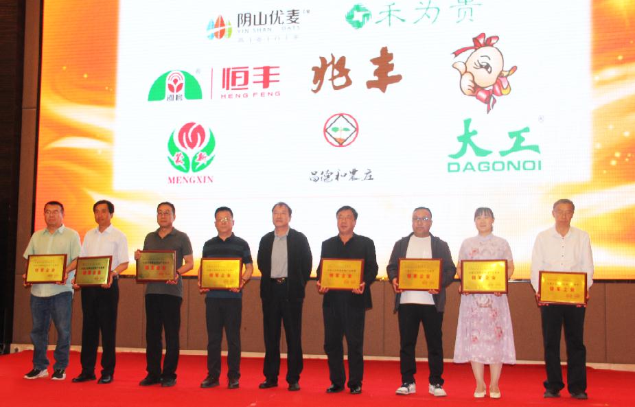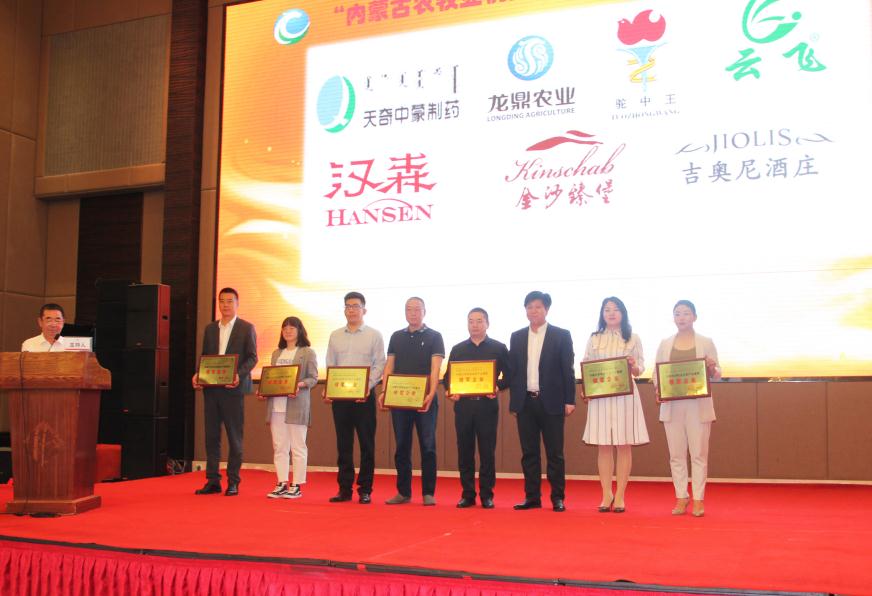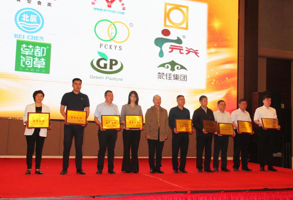 內(nèi)蒙古自治區(qū)農(nóng)牧廳總農(nóng)藝師劉永明為獲獎(jiǎng)企業(yè)頒獎(jiǎng)