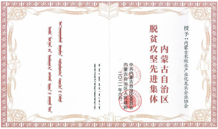 標題:內(nèi)蒙古農(nóng)牧業(yè)產(chǎn)業(yè)化龍頭企業(yè)協(xié)會榮獲 “全區(qū)脫貧攻堅先進集體”稱號