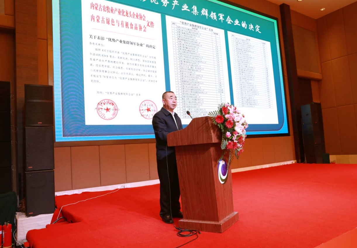 內(nèi)蒙古農(nóng)牧業(yè)產(chǎn)業(yè)化龍頭企業(yè)協(xié)會(huì)執(zhí)行秘書長(zhǎng)呼群宣讀表彰決定