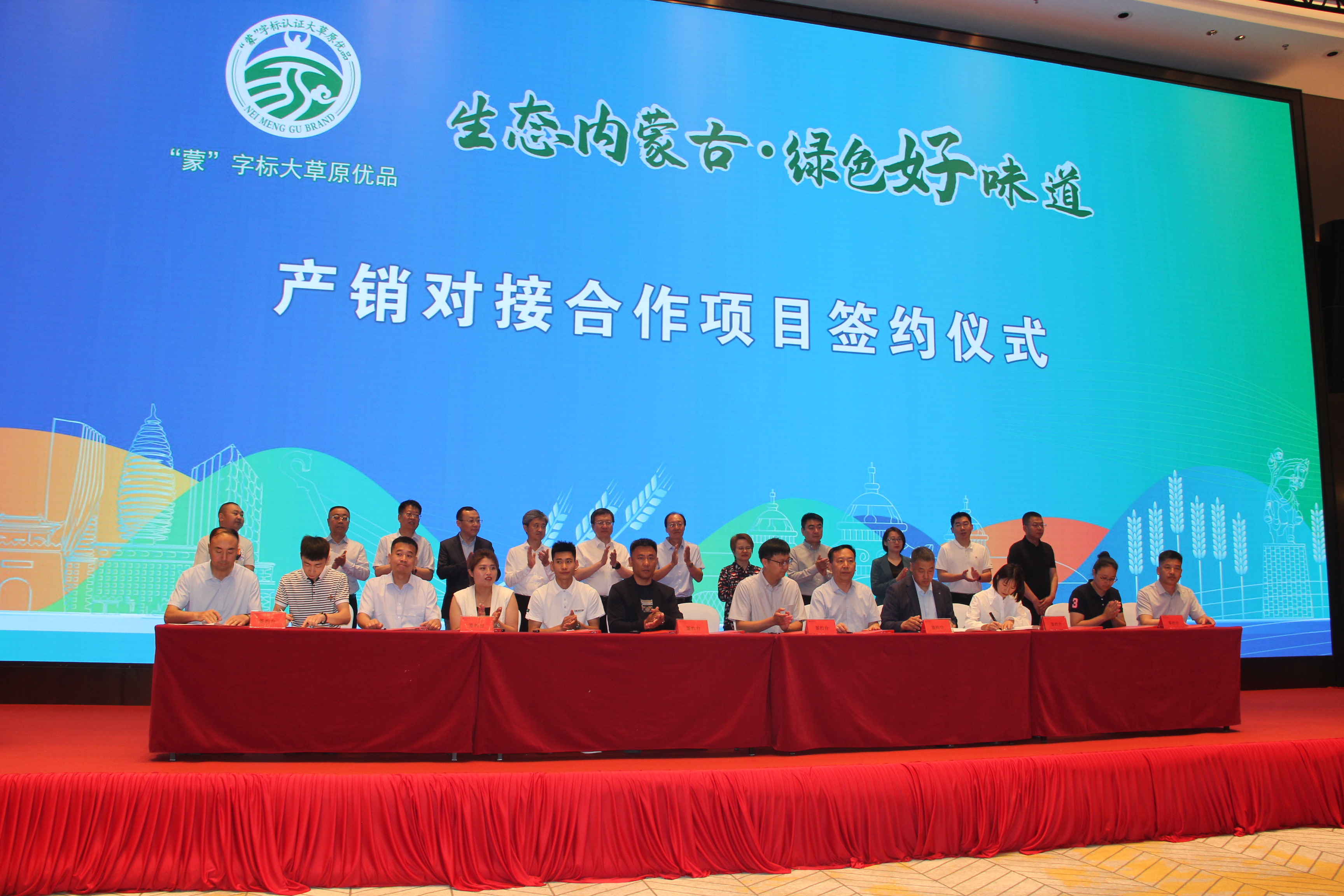推介會(huì)上,自治區(qū)農(nóng)牧廳為內(nèi)蒙古優(yōu)質(zhì)農(nóng)畜產(chǎn)品雄安新區(qū)營銷中心進(jìn)行授牌,“暖城多味”“錫林郭勒奶酪”“興安盟大米”“通遼肉?!薄疤熨x河套”“呼倫貝爾草原羊肉”6個(gè)區(qū)域公用品牌作宣傳推介,12個(gè)盟市的400余種優(yōu)質(zhì)農(nóng)畜產(chǎn)品亮相。錫林郭勒盟羊羊牧業(yè)股份有限公司等6家企業(yè)分別與雄安新區(qū)企業(yè)簽訂農(nóng)畜產(chǎn)品營銷輸出戰(zhàn)略合作協(xié)議,內(nèi)蒙古品牌建設(shè)促進(jìn)會(huì)與雄安新區(qū)農(nóng)業(yè)品牌促進(jìn)會(huì)簽訂區(qū)域品牌協(xié)同發(fā)展戰(zhàn)略合作框架協(xié)議。