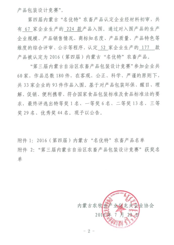 關(guān)于發(fā)布2016年(第四屆)內(nèi)蒙古“名優(yōu)特”農(nóng)畜產(chǎn)品及第三屆內(nèi)蒙古自治區(qū)包裝設(shè)計競賽的公告