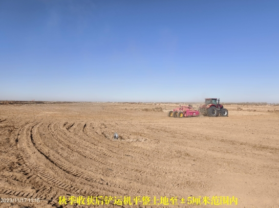 2、磴口縣巴彥套海農(nóng)場機械隊地塊屬于2022年高標(biāo)準(zhǔn)農(nóng)田項目區(qū),渠、溝、路、林、田配套到位?;緸閷?00米、長700米的“條形”土地,激光平整土地誤差在3厘米內(nèi)。2023年全部種植中苜4號和美國騎士苜蓿,年內(nèi)平茬收獲2次,現(xiàn)已澆灌冬季保墑水,是認(rèn)證和發(fā)展有機苜蓿基地的理想之地。