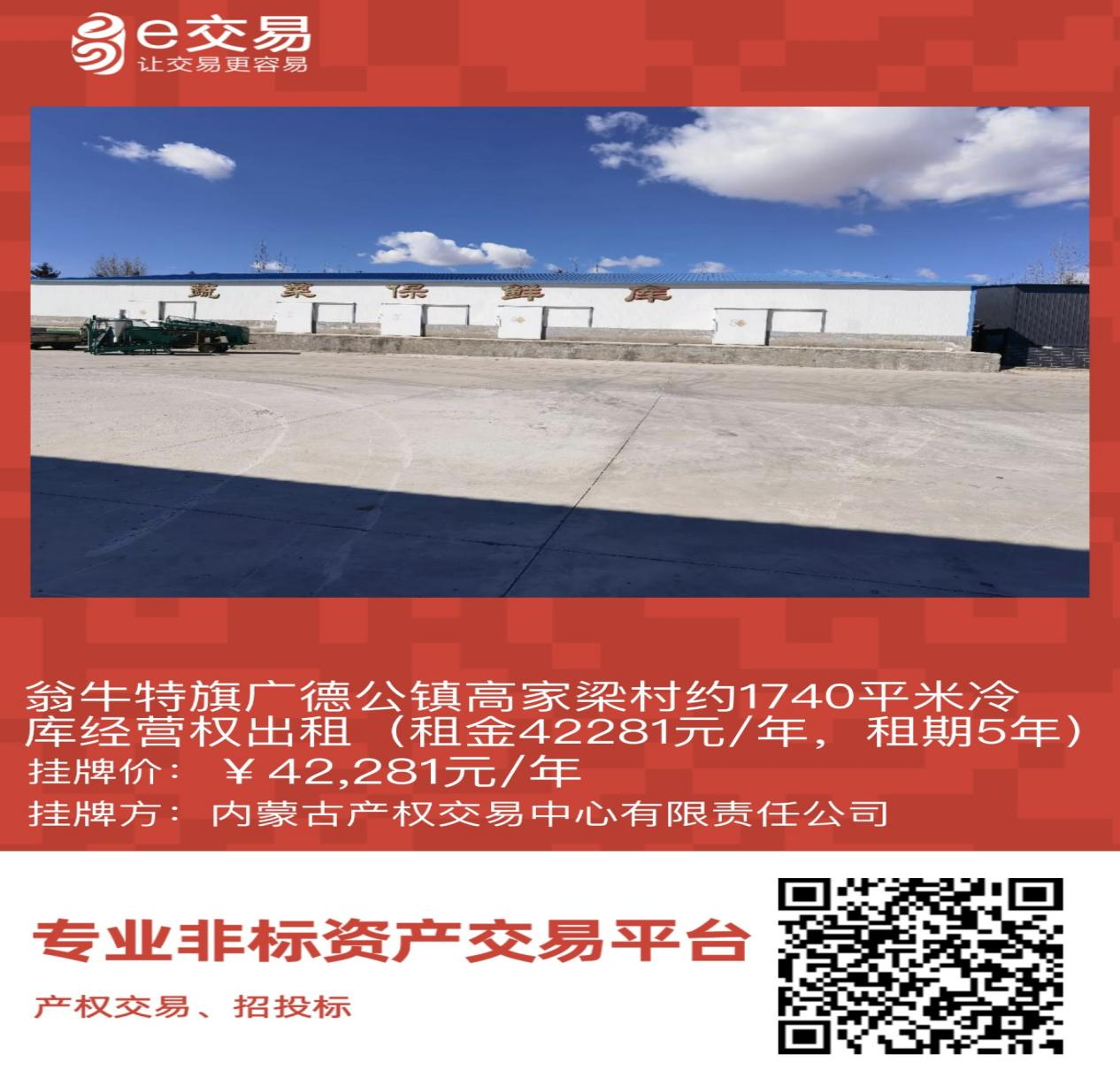 翁牛特旗廣德公鎮(zhèn)高家梁村約1740平米冷庫經(jīng)營權(quán)出租(租金42281元/年,租期5年)