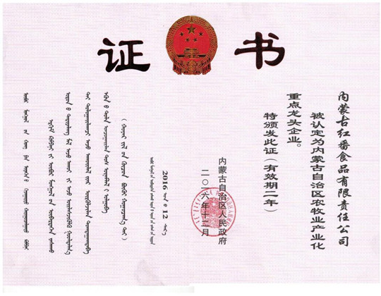 內(nèi)蒙古紅番生物科技有限公司注冊(cè)資金2500萬元。是中國國際合作促進(jìn)會(huì)的常務(wù)理事單位。成立后收購了內(nèi)蒙古紅番食品有限責(zé)任公司。擁有紅番、中番和番美滋三個(gè)知名番茄品牌商標(biāo)。在全球第一個(gè)提出了番茄制品能改善人類體質(zhì)的論點(diǎn)。提出一個(gè)產(chǎn)業(yè)兩個(gè)中心的發(fā)展方針,即立足內(nèi)蒙古作為番茄產(chǎn)業(yè)資源基地的產(chǎn)業(yè)優(yōu)勢,建設(shè)番茄產(chǎn)業(yè)的研發(fā)中心...