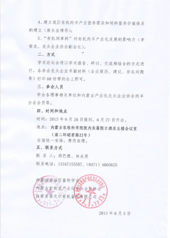 關于舉辦首屆內蒙古有機肉羊產業(yè)經濟發(fā)展學術論壇會的通知