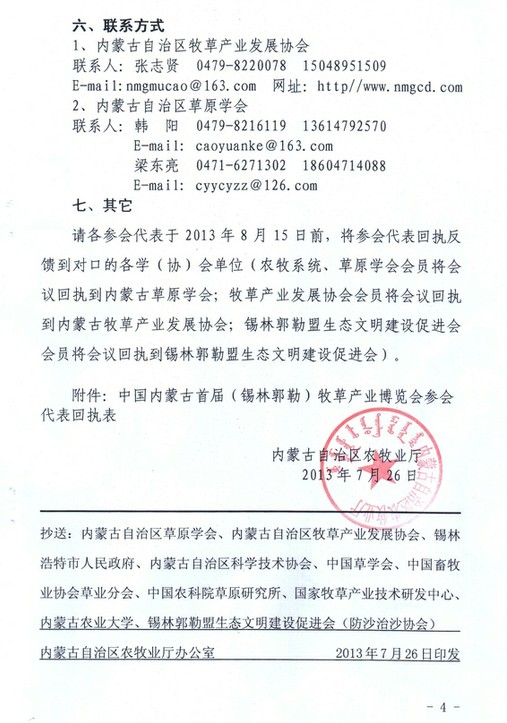 關(guān)于召開中國內(nèi)蒙古首屆(錫林郭勒)牧草業(yè)博覽會的通知