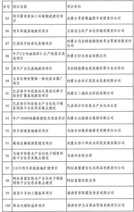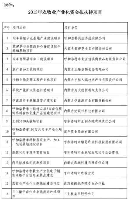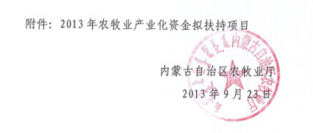 2013年內蒙古農牧業(yè)產業(yè)化項目公示通知