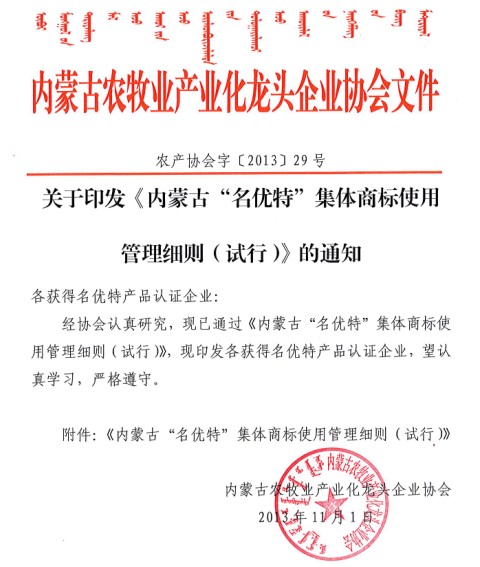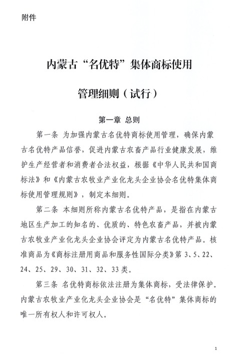 關于印發(fā)《內(nèi)蒙古“名優(yōu)特”集體商標使用管理細則(試行)的通知》