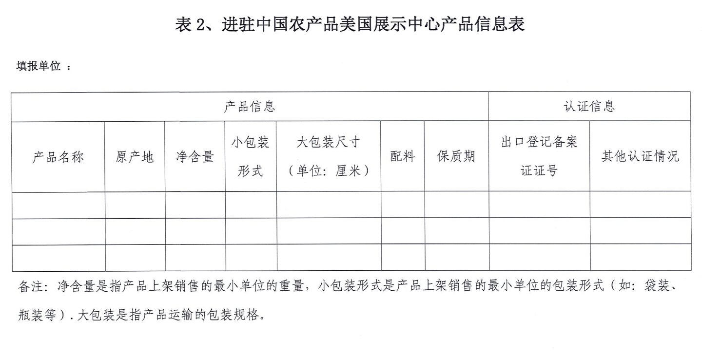 關(guān)于中國農(nóng)產(chǎn)品美國展示中心展品征集的通知