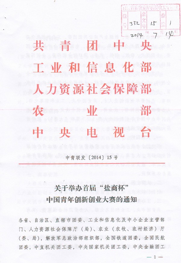 關(guān)于轉(zhuǎn)發(fā)《舉辦首屆“鹽商杯”中國(guó)青年創(chuàng)業(yè)大賽的通知》的通知