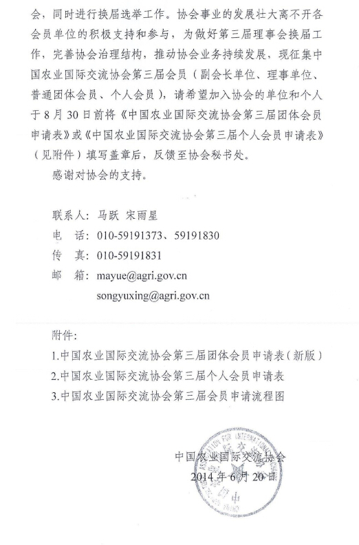 轉(zhuǎn)發(fā)關(guān)于征集中國農(nóng)業(yè)國際交流協(xié)會第三屆會員的函