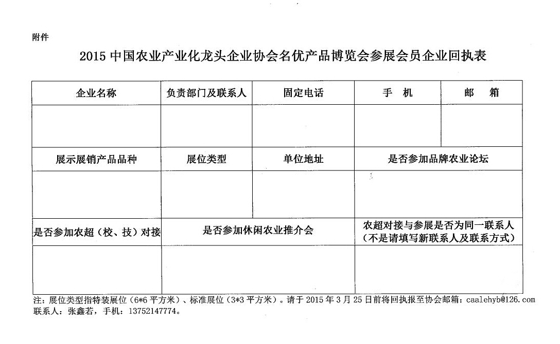 關(guān)于舉辦2015年中國(guó)農(nóng)業(yè)產(chǎn)業(yè)化龍頭企業(yè)協(xié)會(huì)名優(yōu)產(chǎn)品博覽會(huì)的通知