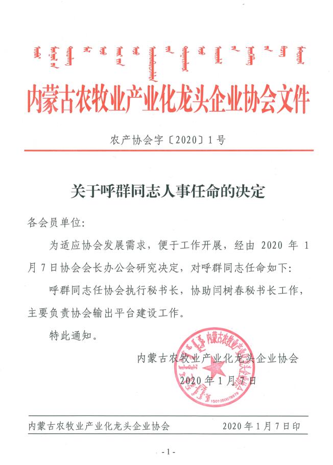 關于呼群同志人事任命的決定