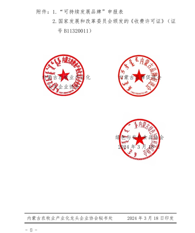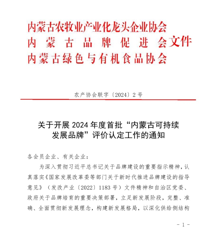 關(guān)于開展2024年度首批“內(nèi)蒙古可持續(xù) 發(fā)展品牌”評(píng)價(jià)認(rèn)定工作的通知