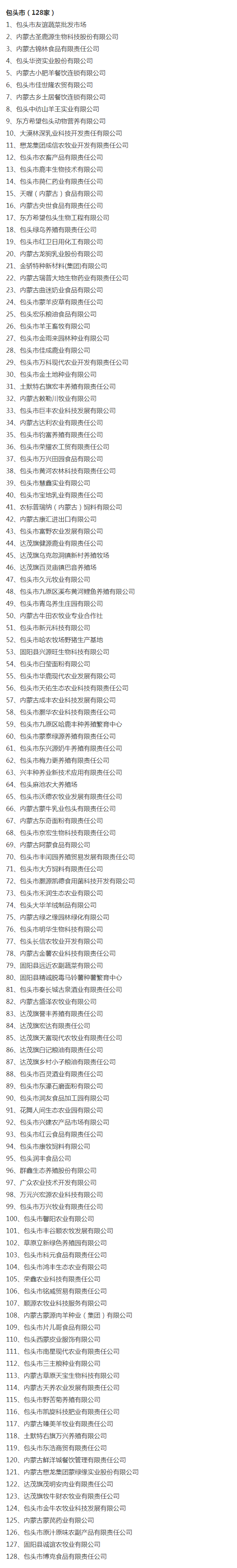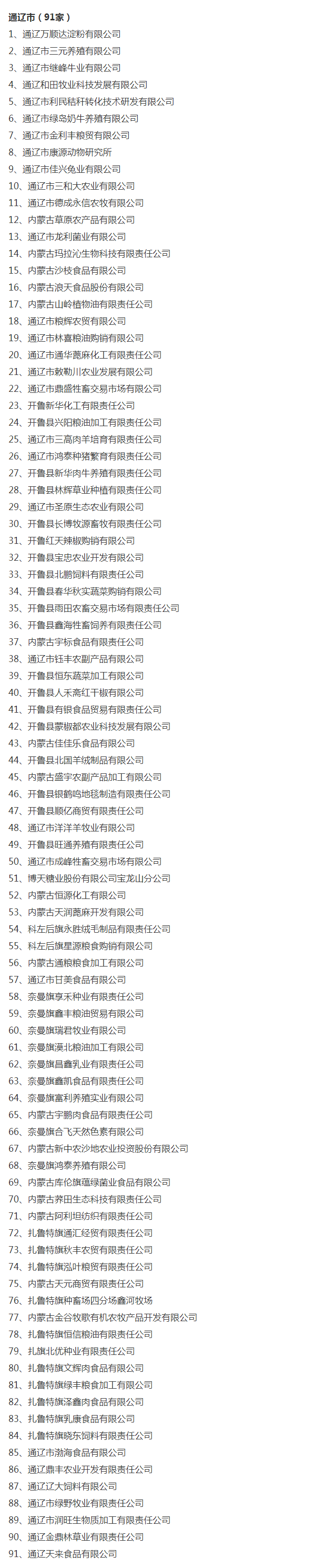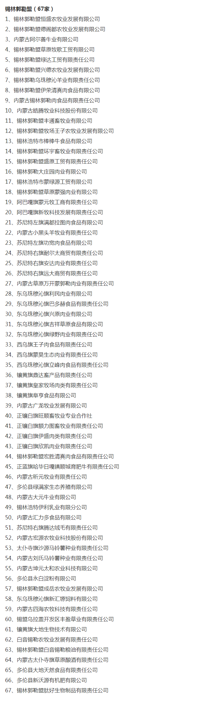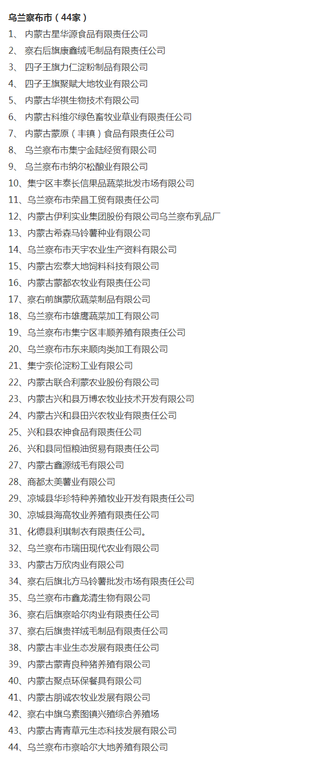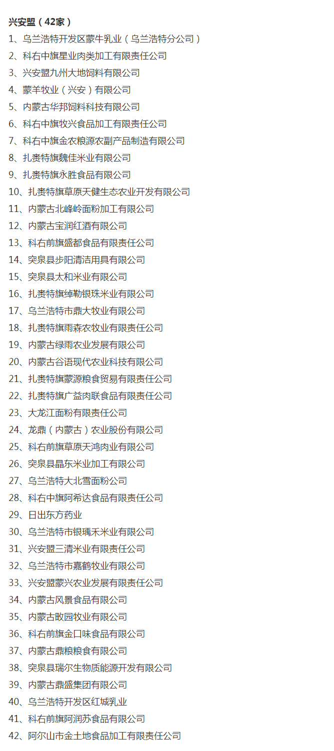 企業(yè)名稱:截止2017年末盟市級農(nóng)業(yè)產(chǎn)業(yè)化重點(diǎn)龍頭企業(yè)名單