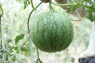 華萊士瓜盛產(chǎn)于內(nèi)蒙古磴口縣,產(chǎn)區(qū)地處烏蘭布和,為黃河沖積平原,土層深厚,土壤肥沃,含大量有機礦物質(zhì);年日照3000小時以上,氣候干燥,晝夜溫差大;水源泉豐富,年降水量160毫米左右,雖干旱少雨,但黃河穿區(qū)而過,灌溉方便。由于這種特質(zhì)的生長環(huán)境,使得華萊士瓜具有獨特的品質(zhì)特性:皮色鮮艷、皮薄肉細(xì)、光滑潔潤、甜之如蜜、汗液適可、軟脆適度,具有蜜桃、蘋果、荔枝、香蕉、芒果等多種味道,香氣濃郁、營養(yǎng)豐富、香甜爽口,被譽為“瓜中仙品”。
