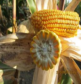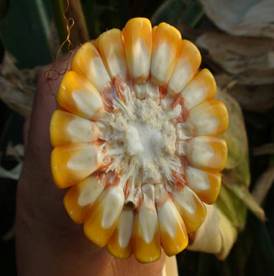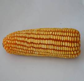 籽粒偏硬粒型,黃色。