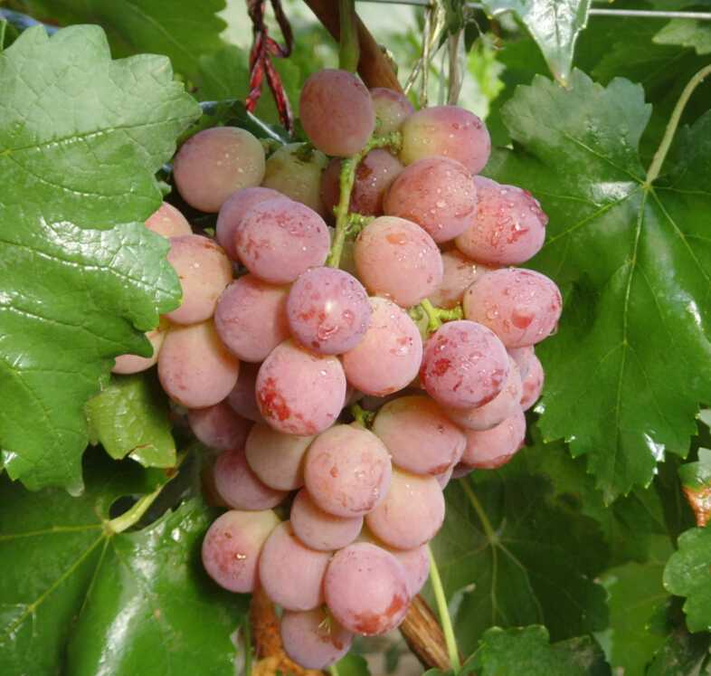 失富羅莎:別名早紅提,由日本引進(jìn)。平均穗質(zhì)量650g,果實(shí)長橢圓形,平均粒質(zhì)量912g,果皮紅色或紫紅色,果肉較軟多汁,味甜,含糖17%~18%,不易脫粒。