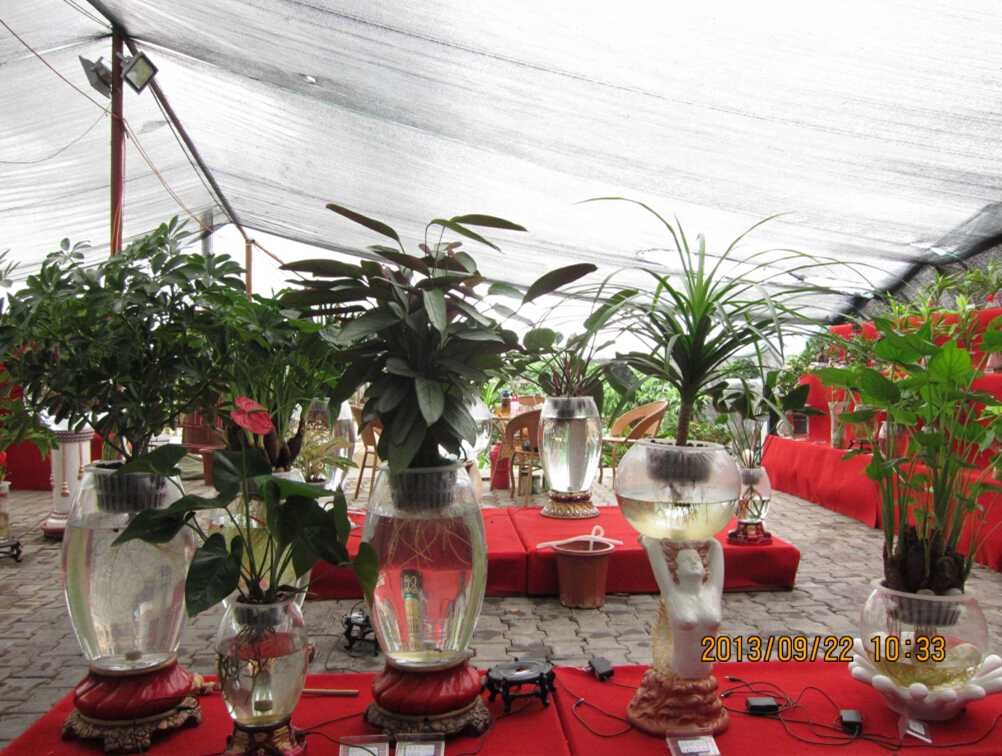 (10)花卉植株生長迅速、健壯,開花多而早、大而香,病蟲害少。花卉陶粒水培花卉技術(shù)由于通氣好,營養(yǎng)均衡充足,花卉植物生長發(fā)育好。與土壤栽培比,其產(chǎn)量高、質(zhì)量好。如陶粒水培花卉技術(shù)的香石竹要比土栽的提前2個月開花,每株多開4朵花,且其香味濃、花期長、上等品率高。陶粒水培花卉技術(shù)的盆花,與土栽比,明顯生長健壯、整齊,葉色濃綠,花多而大、色澤鮮艷,花期長。