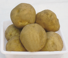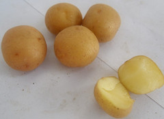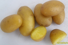 FAVORITA(費(fèi)烏瑞它)1981年由國家農(nóng)業(yè)部種子局從荷蘭引入,山東省農(nóng)業(yè)科學(xué)院蔬菜花卉所引入山東栽培,取名“魯引1號(hào)”,1989年天津市農(nóng)業(yè)科學(xué)院蔬菜花卉所引入,取名“津引8號(hào)”,又名“荷蘭薯”、“荷蘭七號(hào)”、“荷蘭15”,為我國主栽早熟品種之一,該品種出苗后60—70天即可收獲。 [特征特性]該品種早熟,株型直立,株高約60cm左右,莖桿粗壯,分枝少,葉片肥大,葉緣波狀,花淡紫色;結(jié)薯集中,薯塊膨大迅速,長橢圓形,芽眼淺,黃皮黃肉,表皮光滑,食味好,適合加工和出口創(chuàng)匯,在香港及東南亞各國極為暢銷;抗馬鈴薯Y病毒,對A病毒免疫;淀粉12.4%—14%,還原糖0.03%。植株易感晚疫病。塊莖感晚疫病和環(huán)腐病。輕感青枯病、退化快。產(chǎn)量高,畝產(chǎn)2000kg,高產(chǎn)可達(dá)3000kg以上。 [適宜范圍]該品種適宜性較廣,黑龍、遼寧、內(nèi)蒙古、河北、北京、山東、江蘇、廣東、廣西、貴州、四川等地均有種植,是適宜出口的品種。