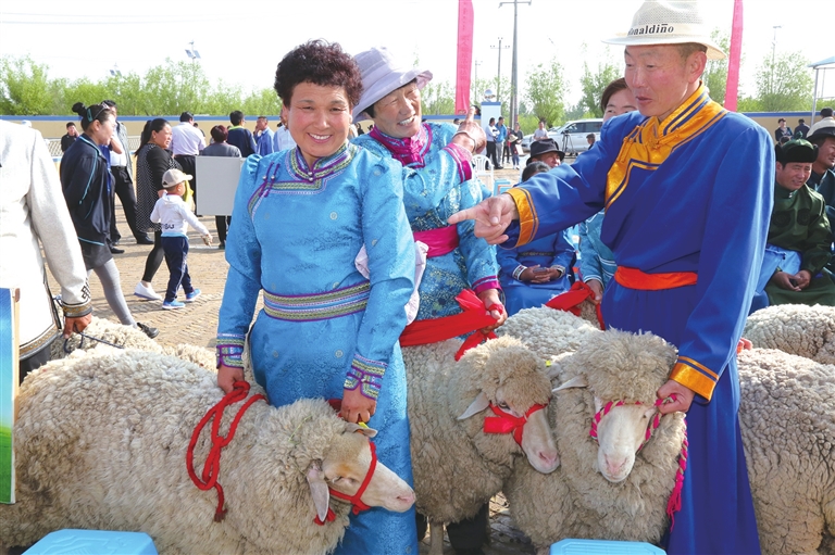 烏審旗牧民趕著自家的優(yōu)質細毛羊前來參加旗政府組織的“賽羊大會”。